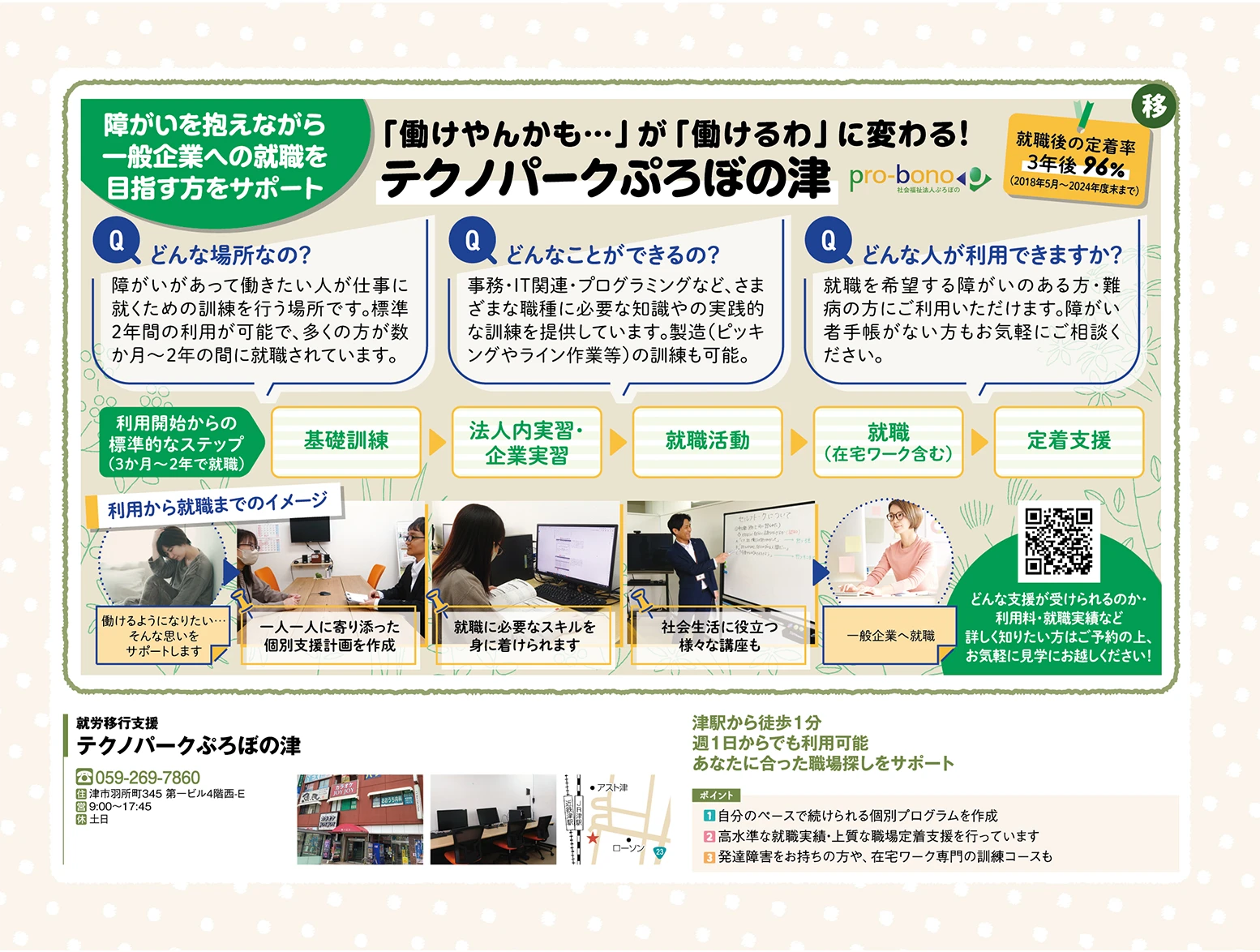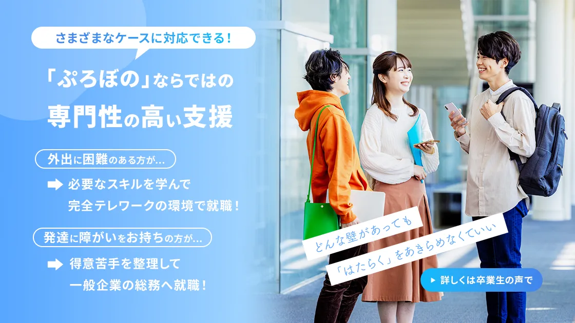 - 就職経験もなく障がいもあり、周りからは就職は難しいと言われていました。ご縁があり、市が主催する障がい者支援の集まりに参加したところ支援機関に繋がり、ぷろぼのを紹介された事が利用のきっかけになりました。